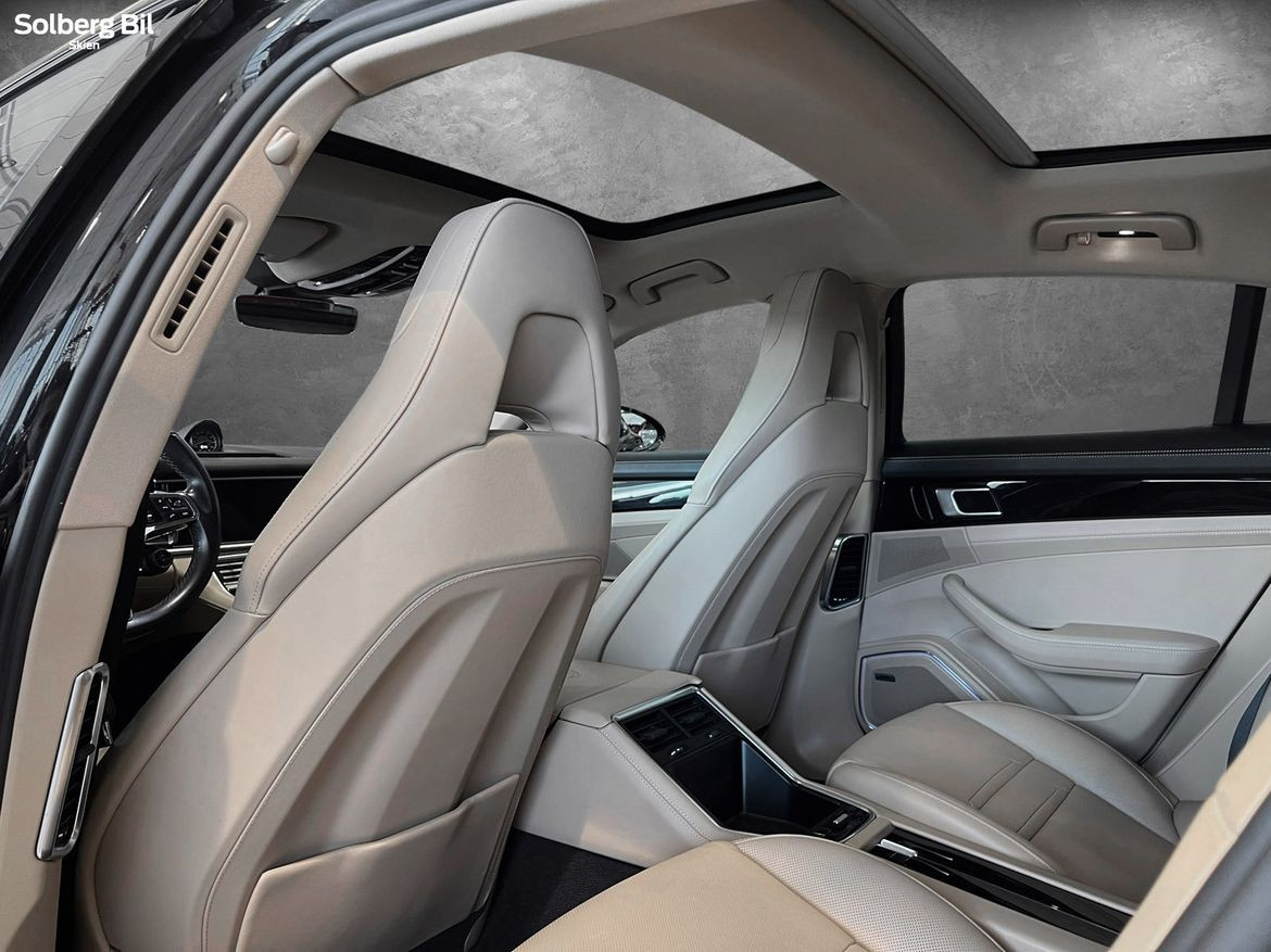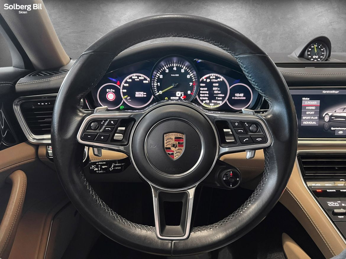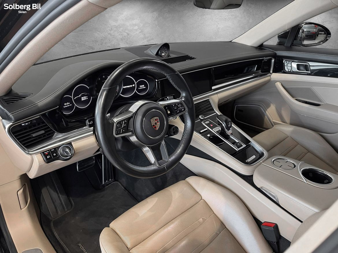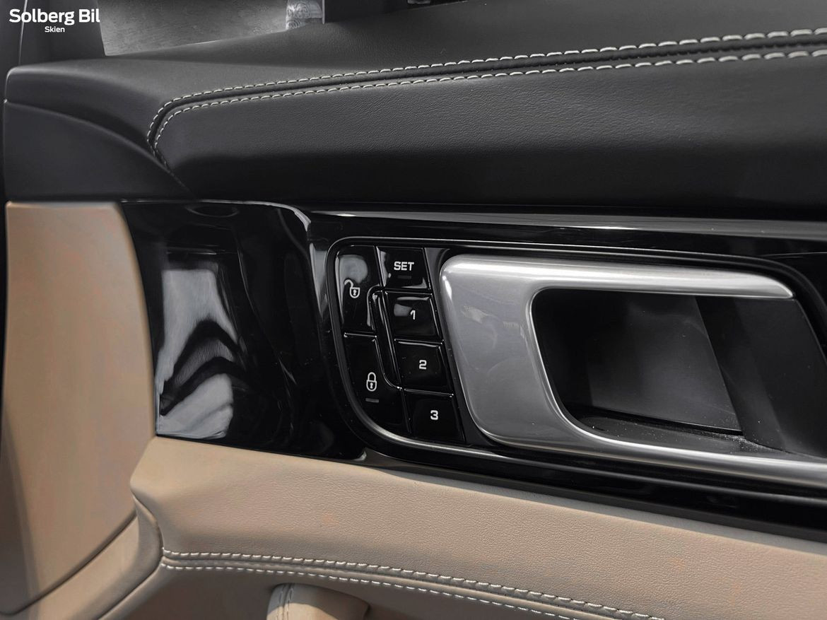 Denne Panamera 4 E-Hybrid leverer det beste fra to verdener med sin kombinasjon av en 2.9L V6 turbomotor og en elektrisk motor. Med en total systemeffekt på 462 hk og et dreiemoment på 700 Nm, akselererer bilen fra 0 til 100 km/t på kun 4,6 sekunder. Hybrid-drivlinjen gir deg også en elektrisk rekkevidde på opptil 50 km – perfekt for utslippsfri bykjøring. PDK-girkassen sikrer raske girskift, og med firehjulstrekk får du eksepsjonelt veigrep under alle forhold.