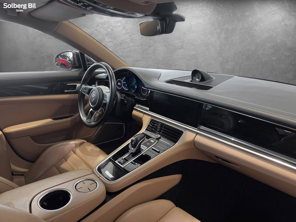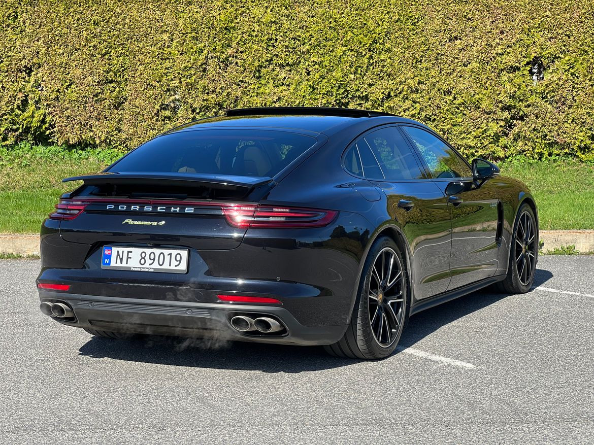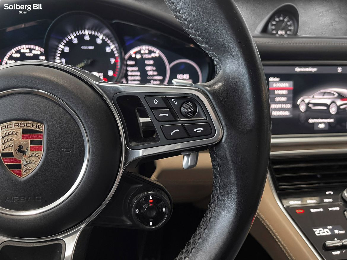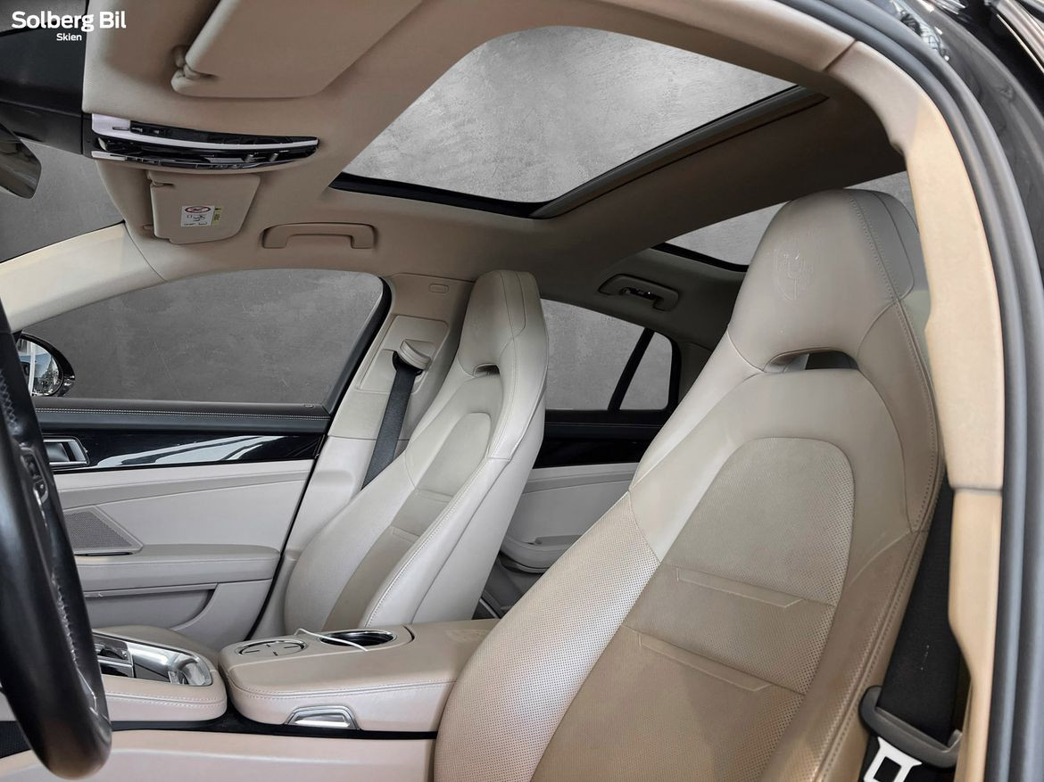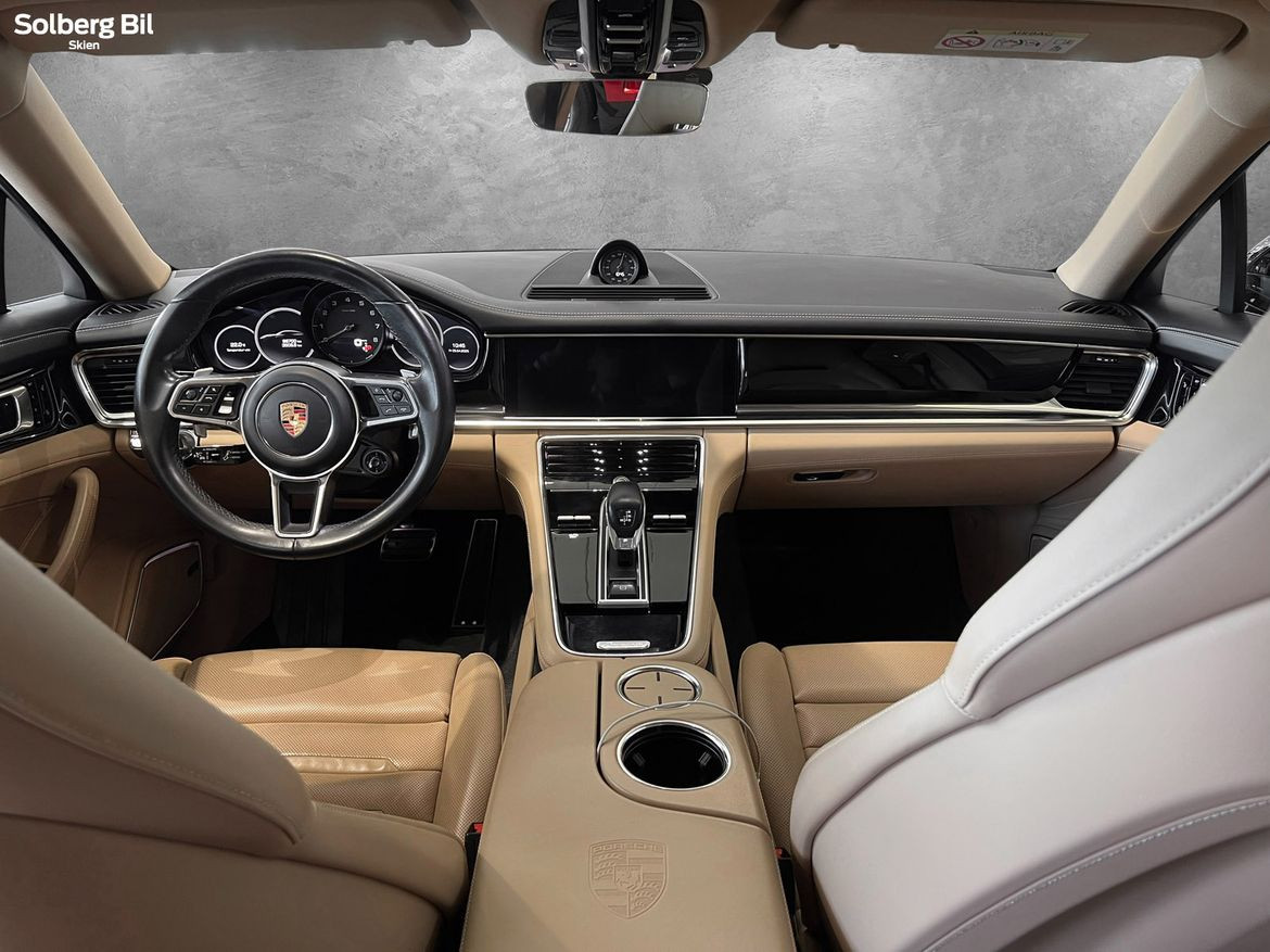 Denne Panamera 4 E-Hybrid leverer det beste fra to verdener med sin kombinasjon av en 2.9L V6 turbomotor og en elektrisk motor. Med en total systemeffekt på 462 hk og et dreiemoment på 700 Nm, akselererer bilen fra 0 til 100 km/t på kun 4,6 sekunder. Hybrid-drivlinjen gir deg også en elektrisk rekkevidde på opptil 50 km – perfekt for utslippsfri bykjøring. PDK-girkassen sikrer raske girskift, og med firehjulstrekk får du eksepsjonelt veigrep under alle forhold.