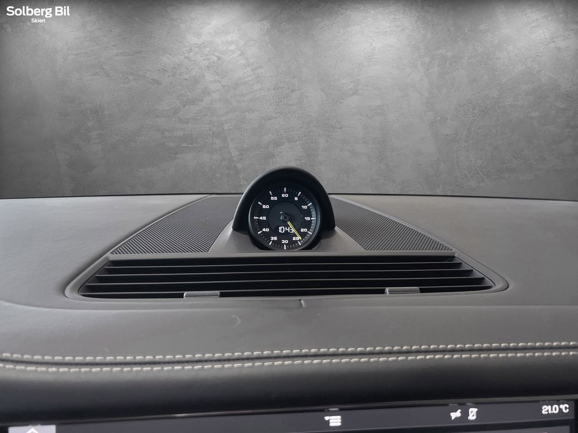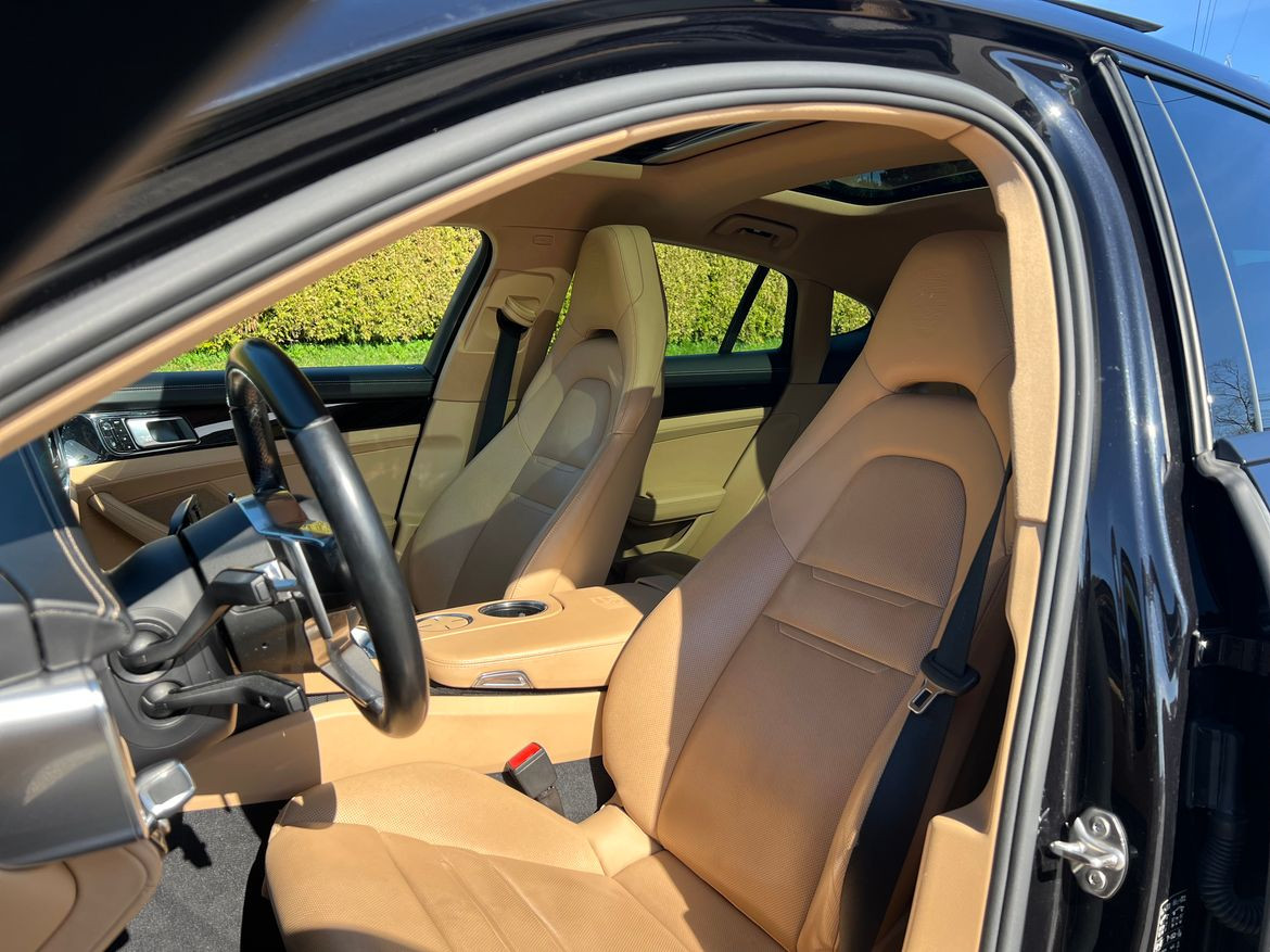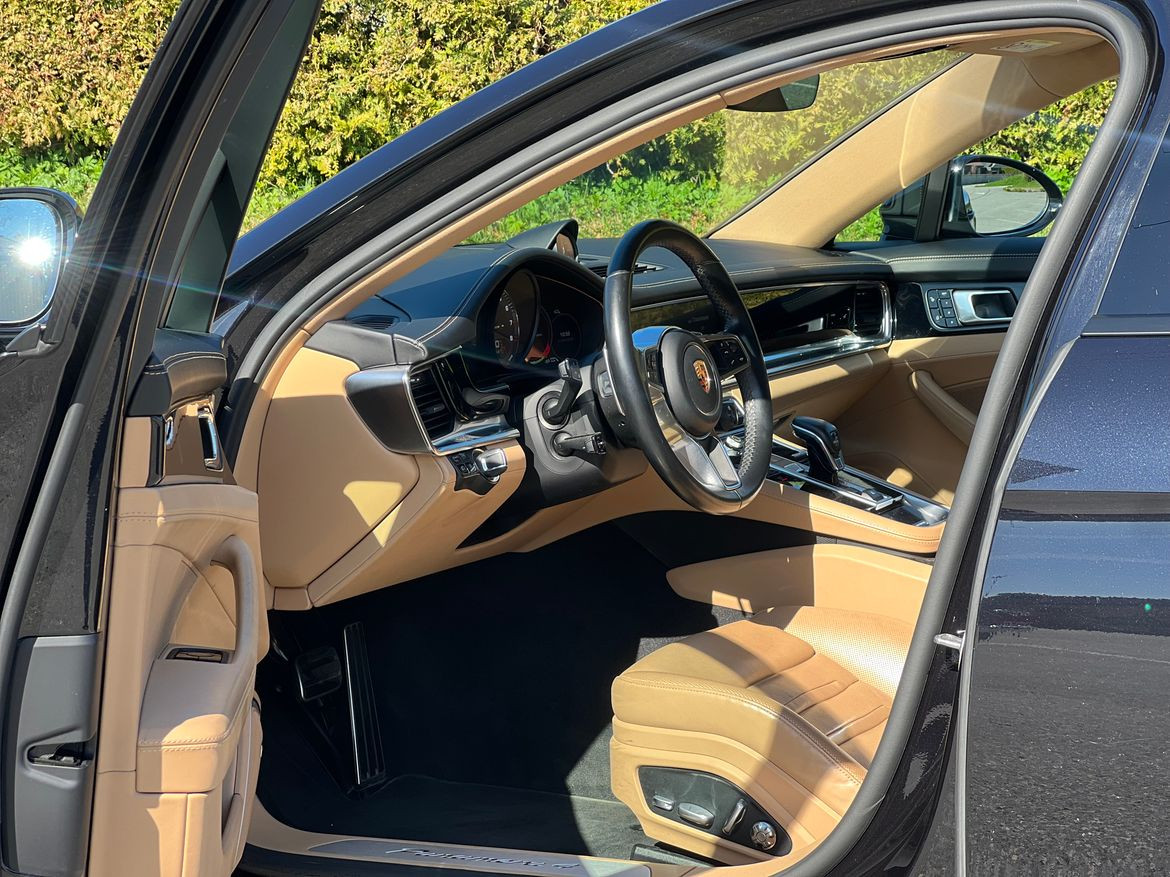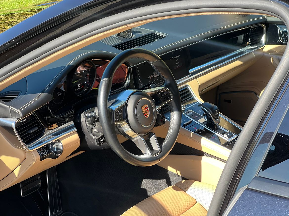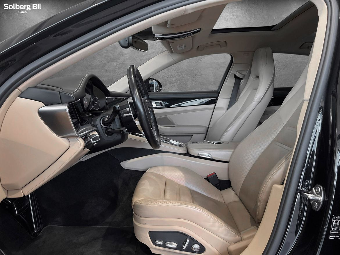 Denne Panamera 4 E-Hybrid leverer det beste fra to verdener med sin kombinasjon av en 2.9L V6 turbomotor og en elektrisk motor. Med en total systemeffekt på 462 hk og et dreiemoment på 700 Nm, akselererer bilen fra 0 til 100 km/t på kun 4,6 sekunder. Hybrid-drivlinjen gir deg også en elektrisk rekkevidde på opptil 50 km – perfekt for utslippsfri bykjøring. PDK-girkassen sikrer raske girskift, og med firehjulstrekk får du eksepsjonelt veigrep under alle forhold.