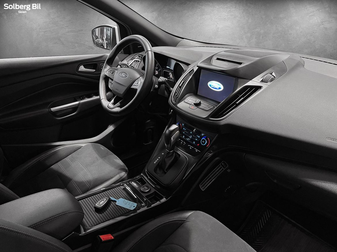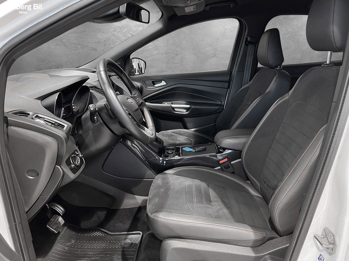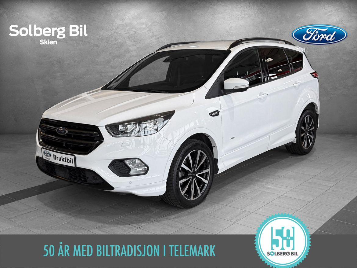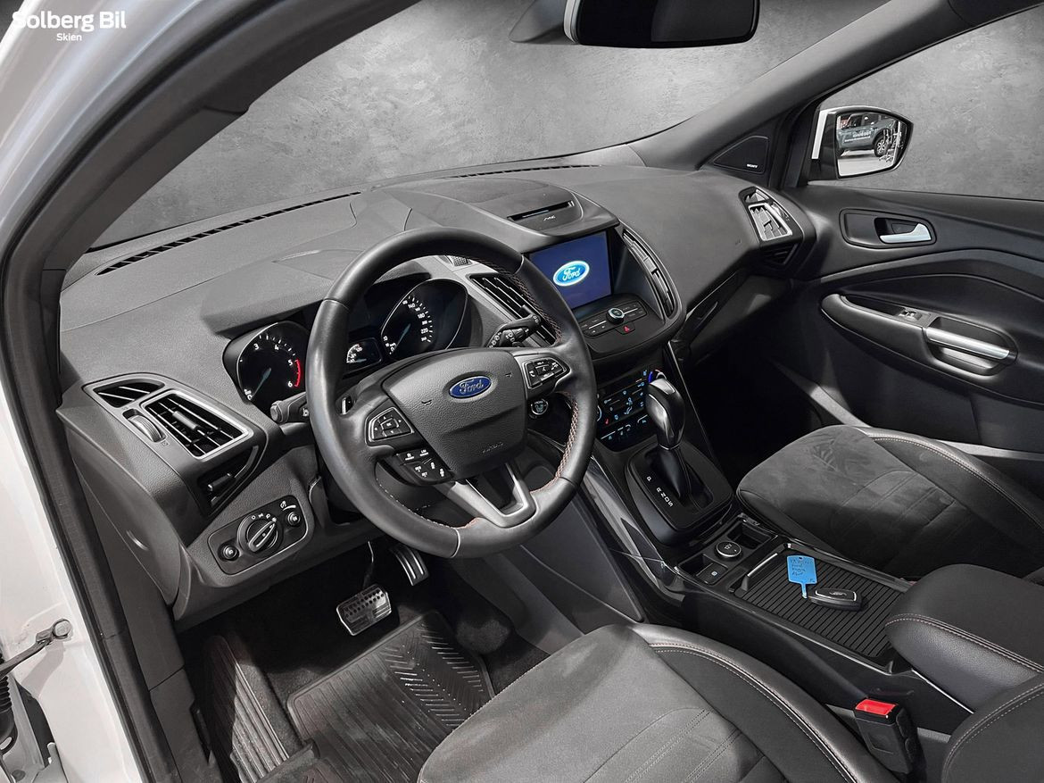 Pen Kuga ST-Line står klar for ny eier. Ford Kuga tilbyr herlig kjørekomfort, rikelig med plass til hele familien og et høyt utstyrsnivå. Bilen har en sterk dieselmotor med 180hk/400Nm, som sammen med Powershift Automatgir gir deg en behagelig reise og rikelig med kraftoverskudd. Tilhengerfeste slås ut ved å trykke på en knapp - og man kan trekke hele 2100kg.