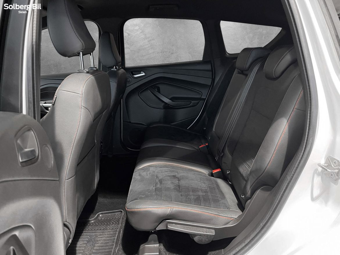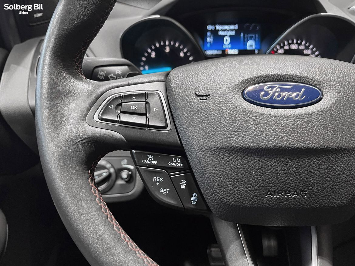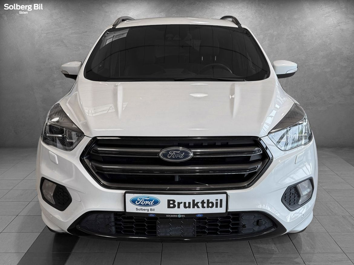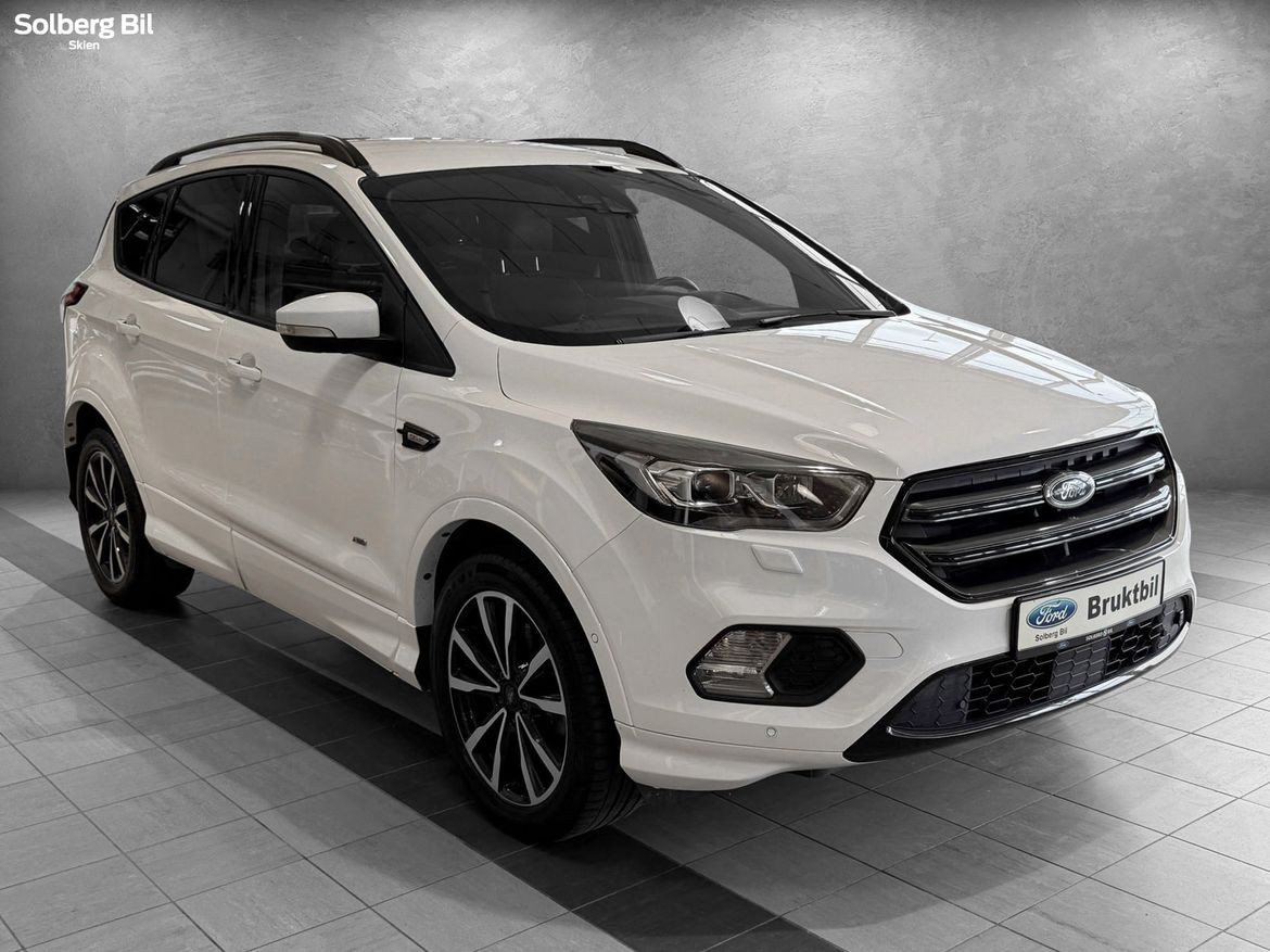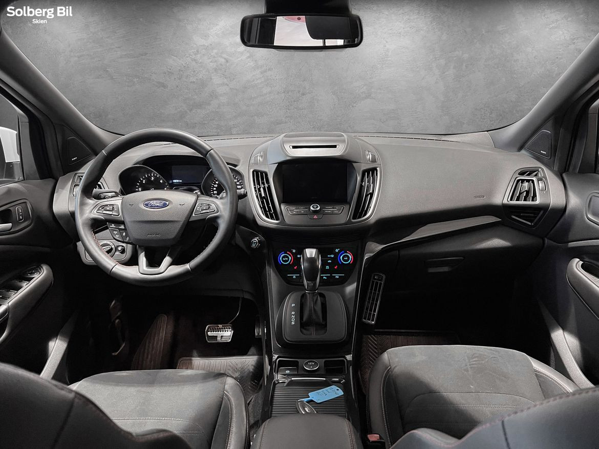 Pen Kuga ST-Line står klar for ny eier. Ford Kuga tilbyr herlig kjørekomfort, rikelig med plass til hele familien og et høyt utstyrsnivå. Bilen har en sterk dieselmotor med 180hk/400Nm, som sammen med Powershift Automatgir gir deg en behagelig reise og rikelig med kraftoverskudd. Tilhengerfeste slås ut ved å trykke på en knapp - og man kan trekke hele 2100kg.