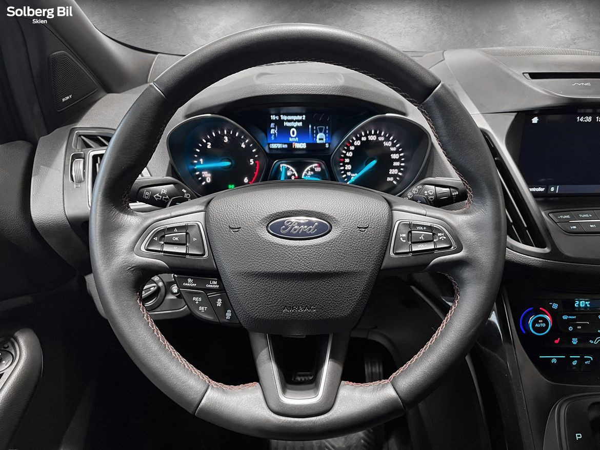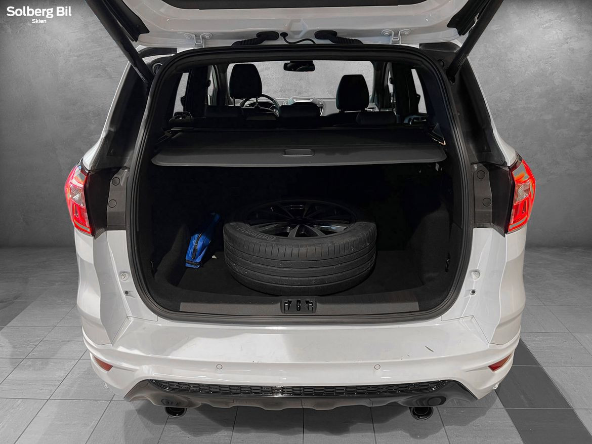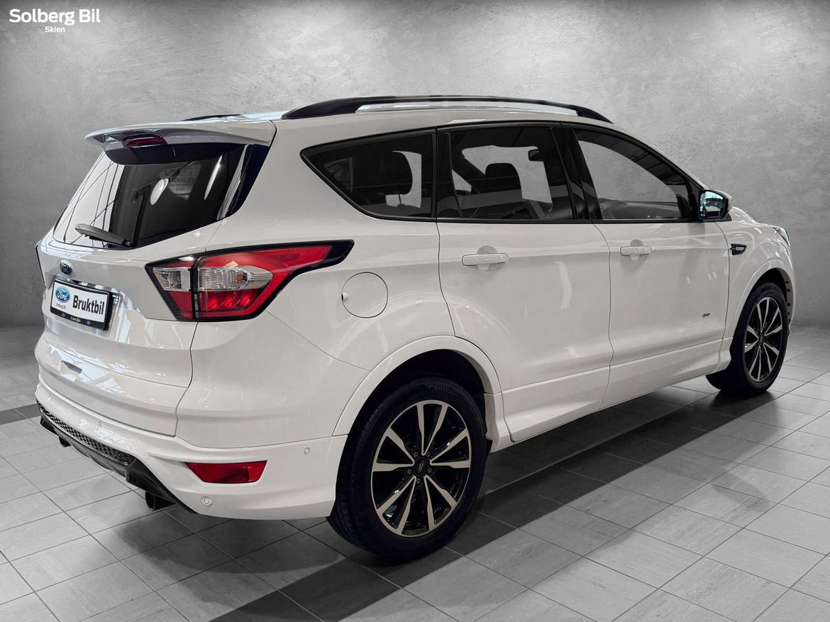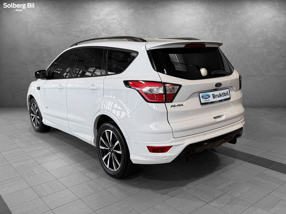 Pen Kuga ST-Line står klar for ny eier. Ford Kuga tilbyr herlig kjørekomfort, rikelig med plass til hele familien og et høyt utstyrsnivå. Bilen har en sterk dieselmotor med 180hk/400Nm, som sammen med Powershift Automatgir gir deg en behagelig reise og rikelig med kraftoverskudd. Tilhengerfeste slås ut ved å trykke på en knapp - og man kan trekke hele 2100kg.