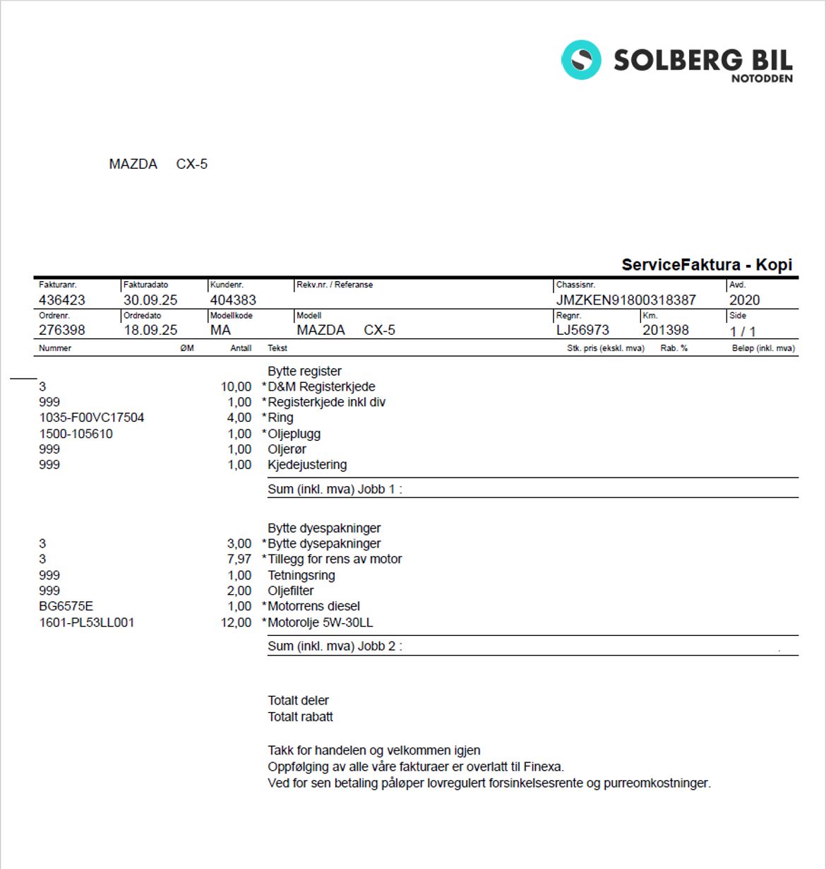 Bilen har service historikk.