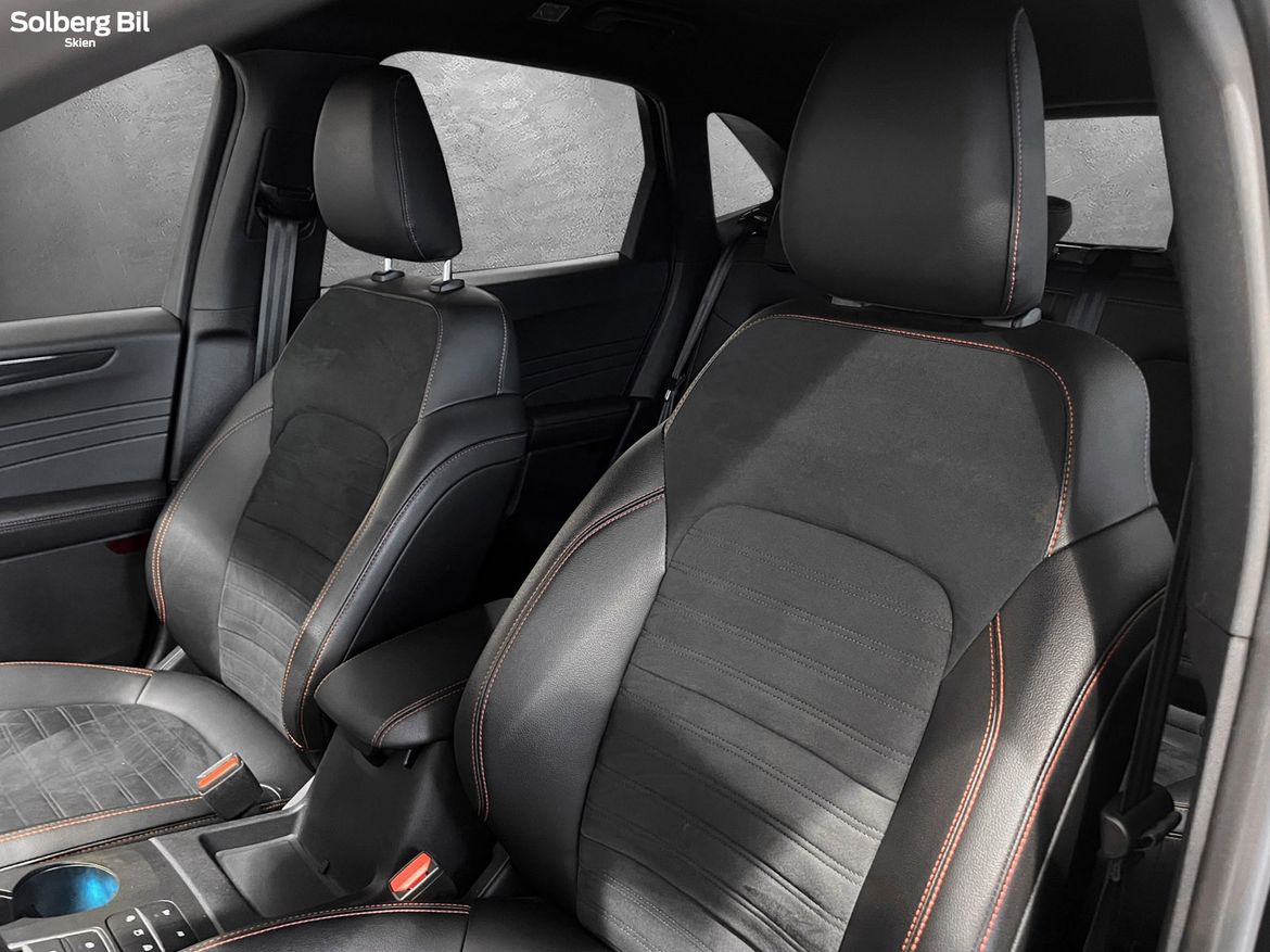 Ford Kuga Plug-In Hybrid i ST-Line utgave er en moderne og romslig SUV som kombinerer bensinmotor og elektrisk drift. Med en elektrisk rekkevidde på inntil 56 km (WLTP) kan mange av hverdagens turer kjøres helelektrisk, samtidig som bilen fungerer fleksibelt på lengre turer. Automatgir og forhjulsdrift gir en komfortabel og smidig kjøreopplevelse.