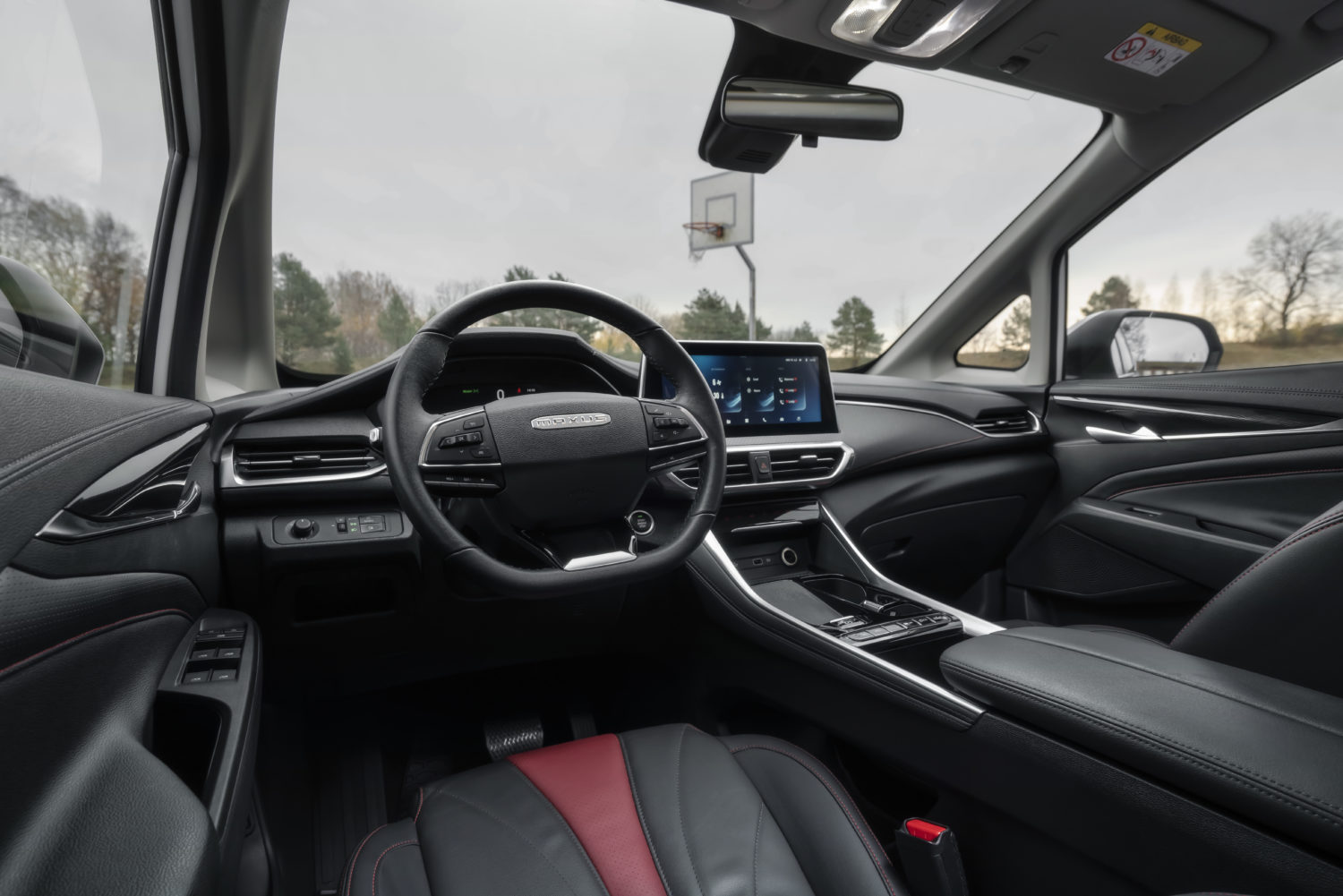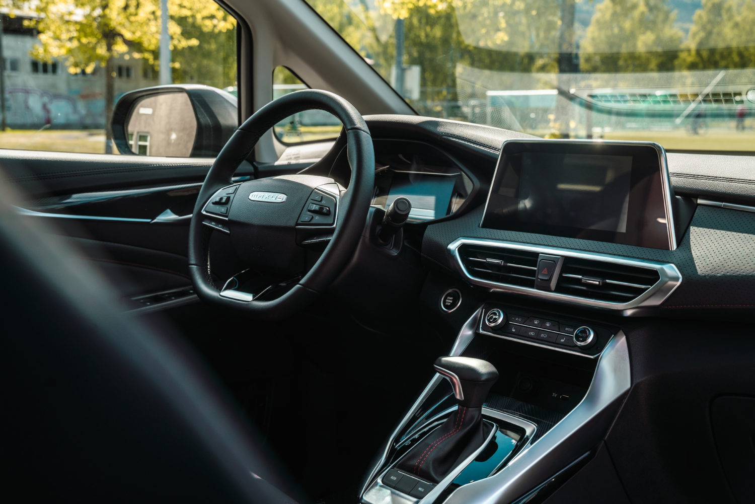Euniq 2-seter leveres en imponerende utstyrsliste, som blant annet inkluderer Apple Carplay, panorama soltak, trådløs mobillading og komfortable skinnseter.